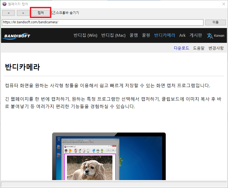 반디카메라 - 웹페이지를 통째로 캡처하는 기능 본문